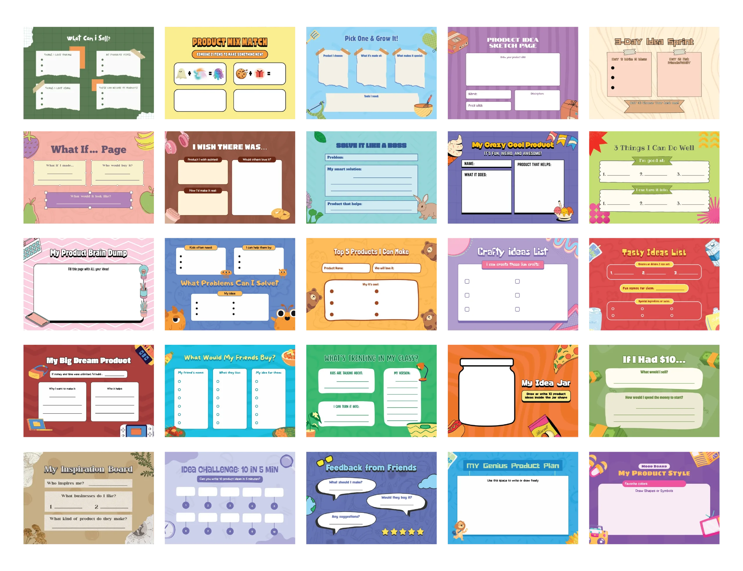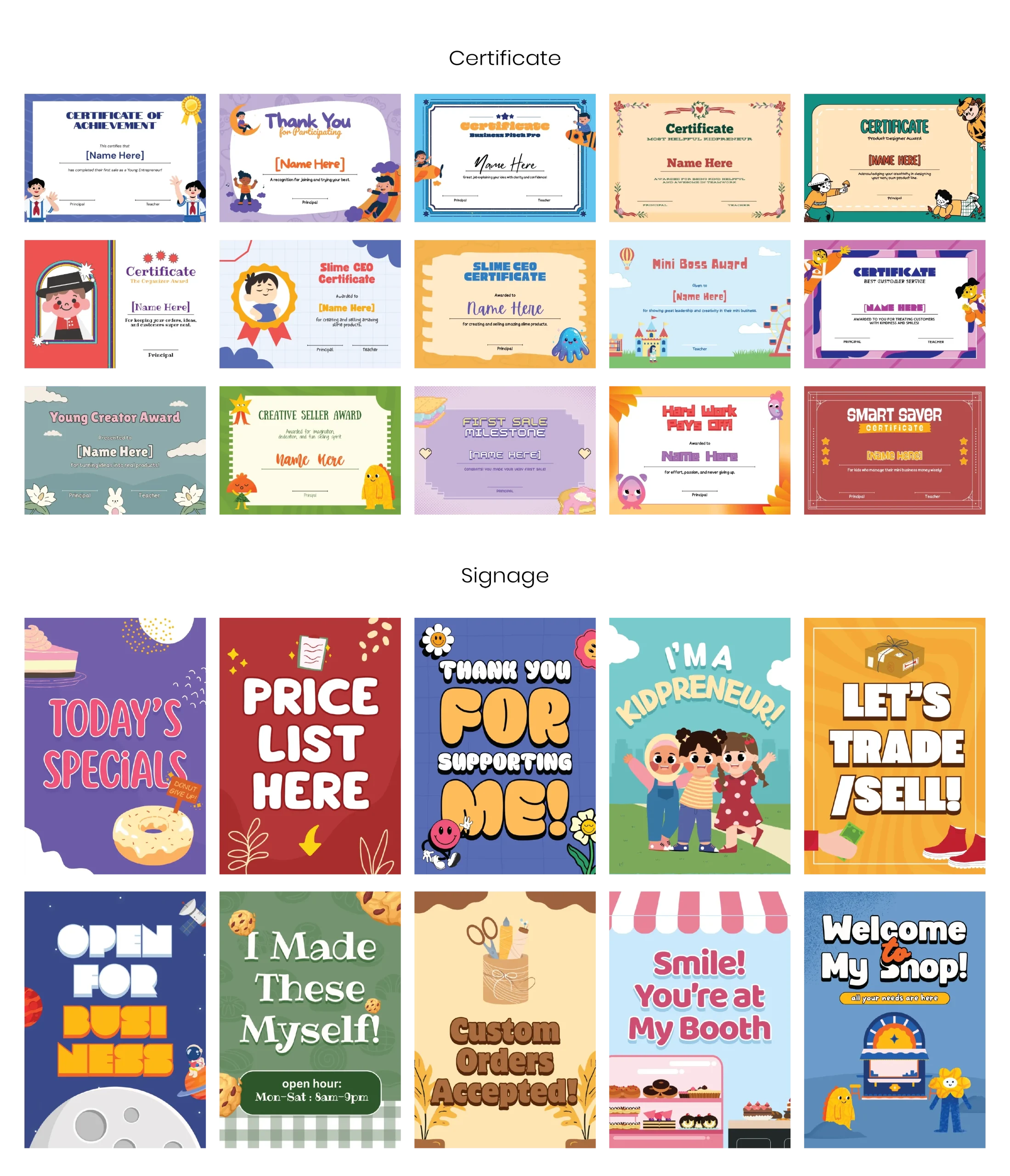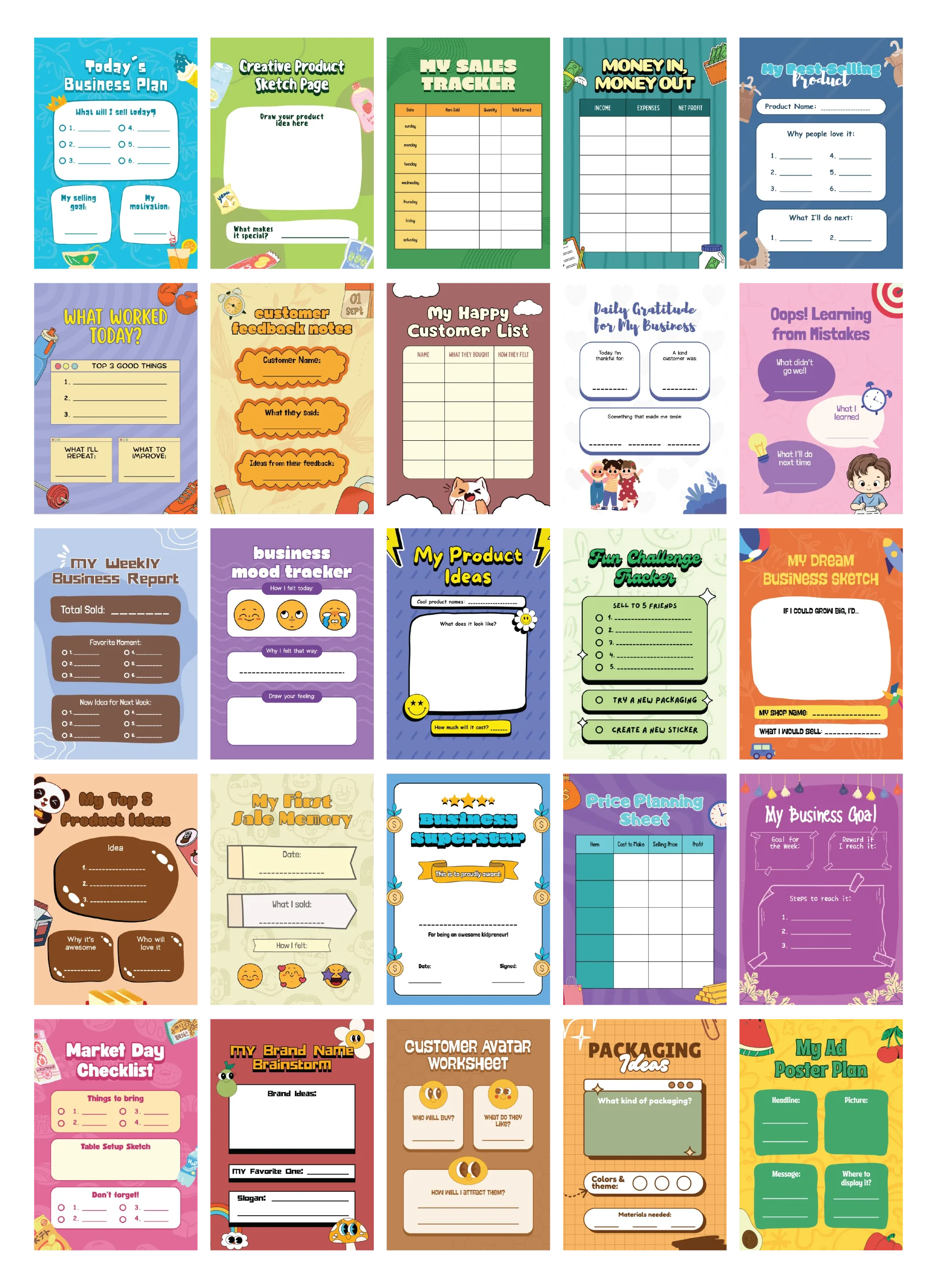 Design fun and practical business-building tools for kids with professionally crafted Canva layouts.