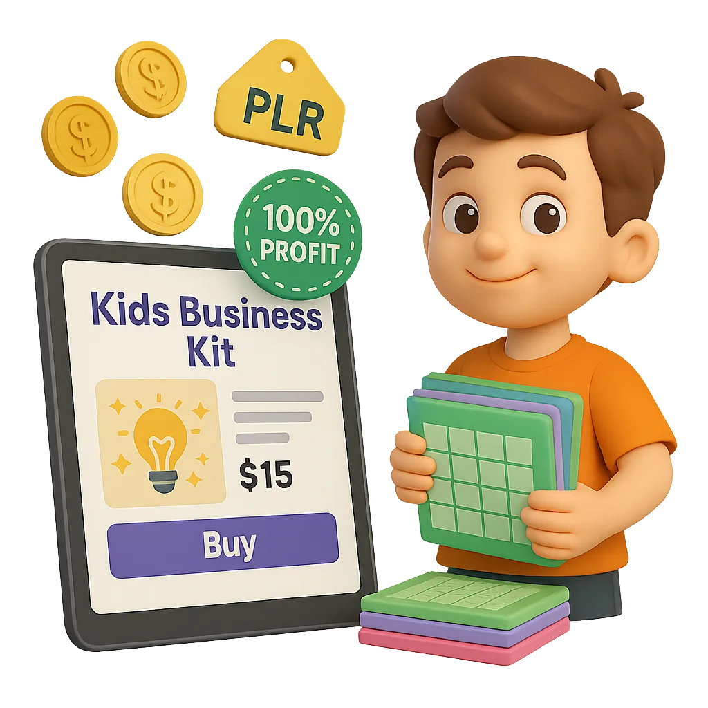 Sell fully branded kids’ business kits and assets with Private Label Rights (PLR) and keep 100% of the profits in this high-demand niche!